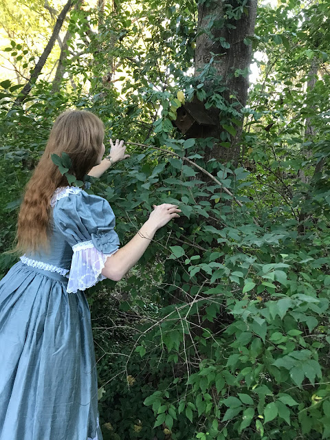 My friend graciously took pictures for me in her back yard. We did our best to figure out Alice in Wonderland-y settings and poses.