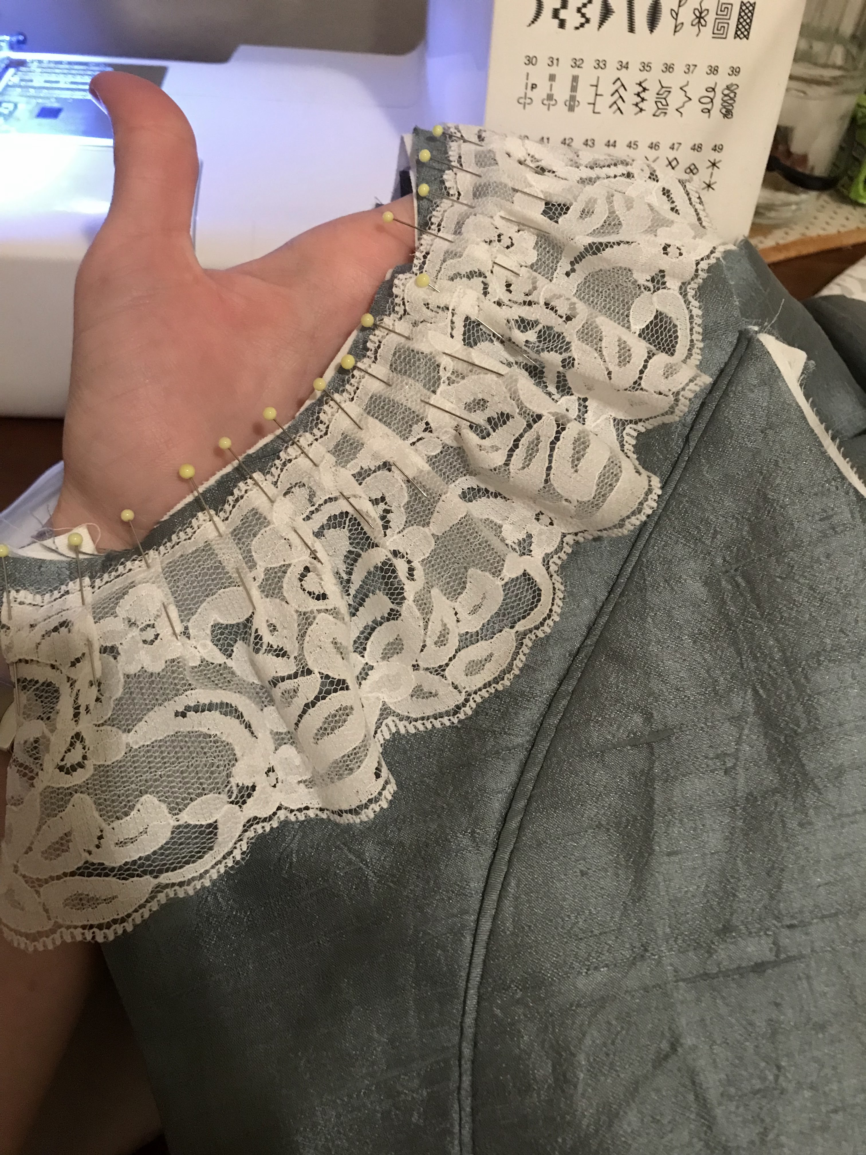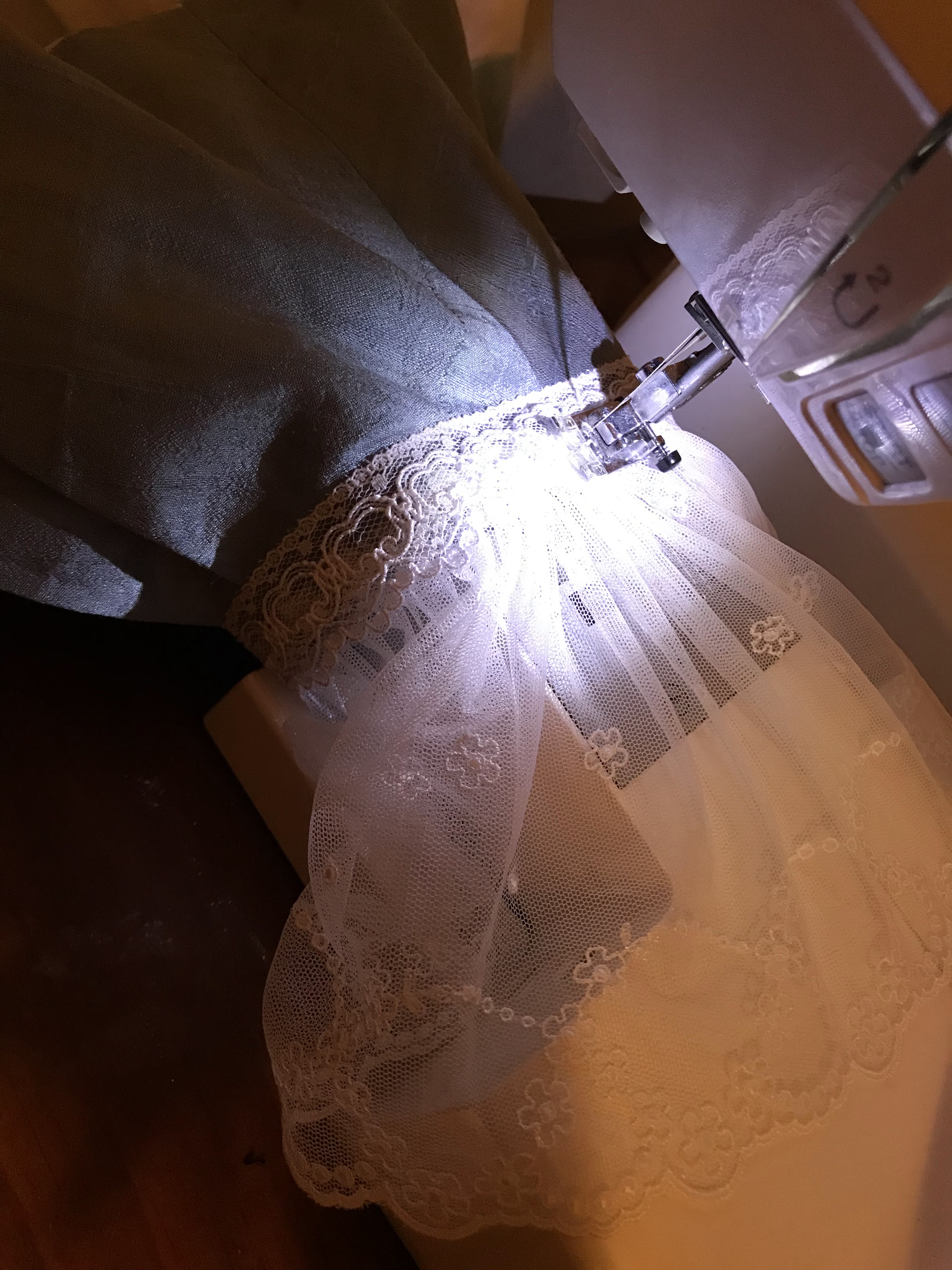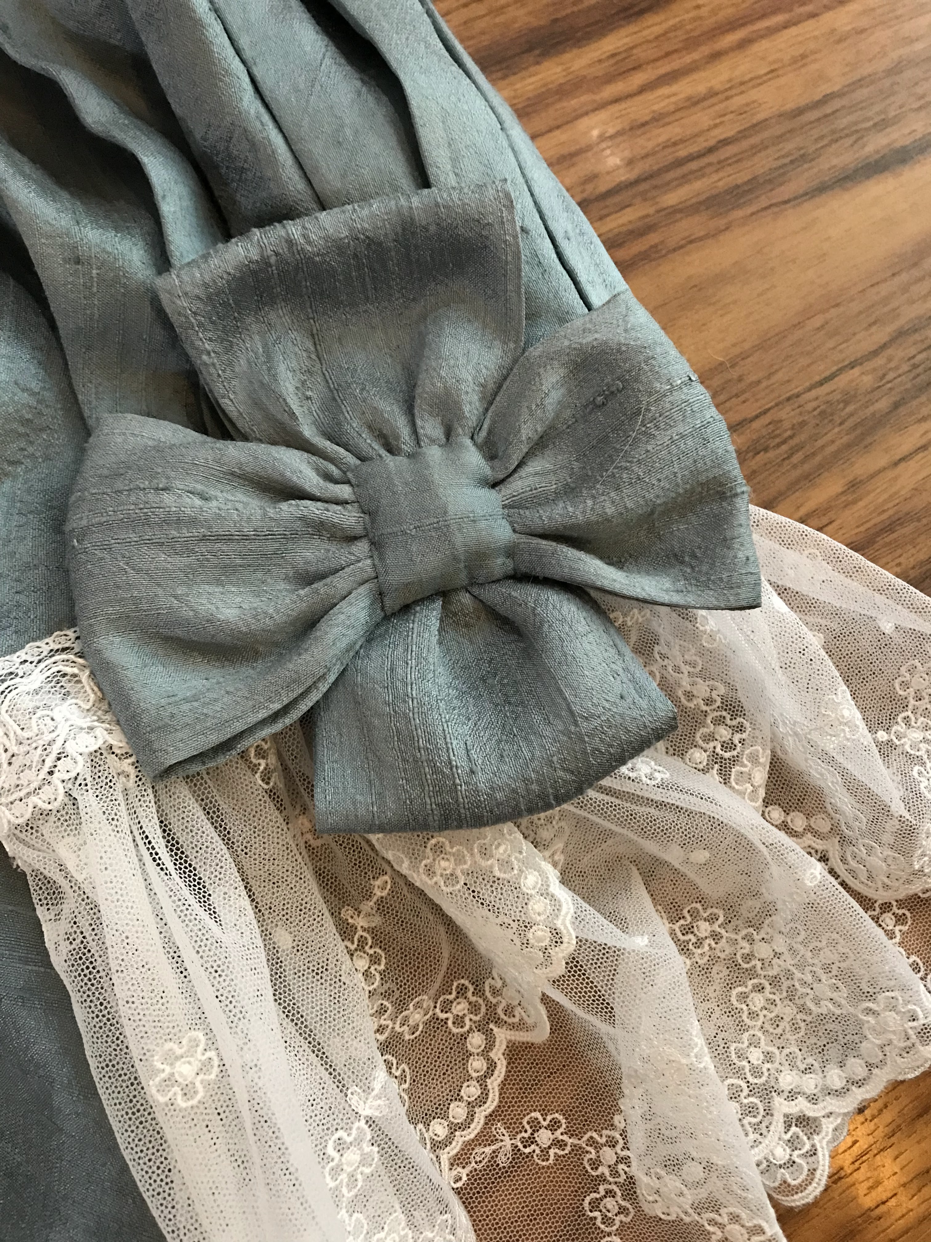 The sleeves are trimmed with wide lace ruffles, made from the same net lace I used for the collar of my wedding dress.