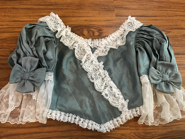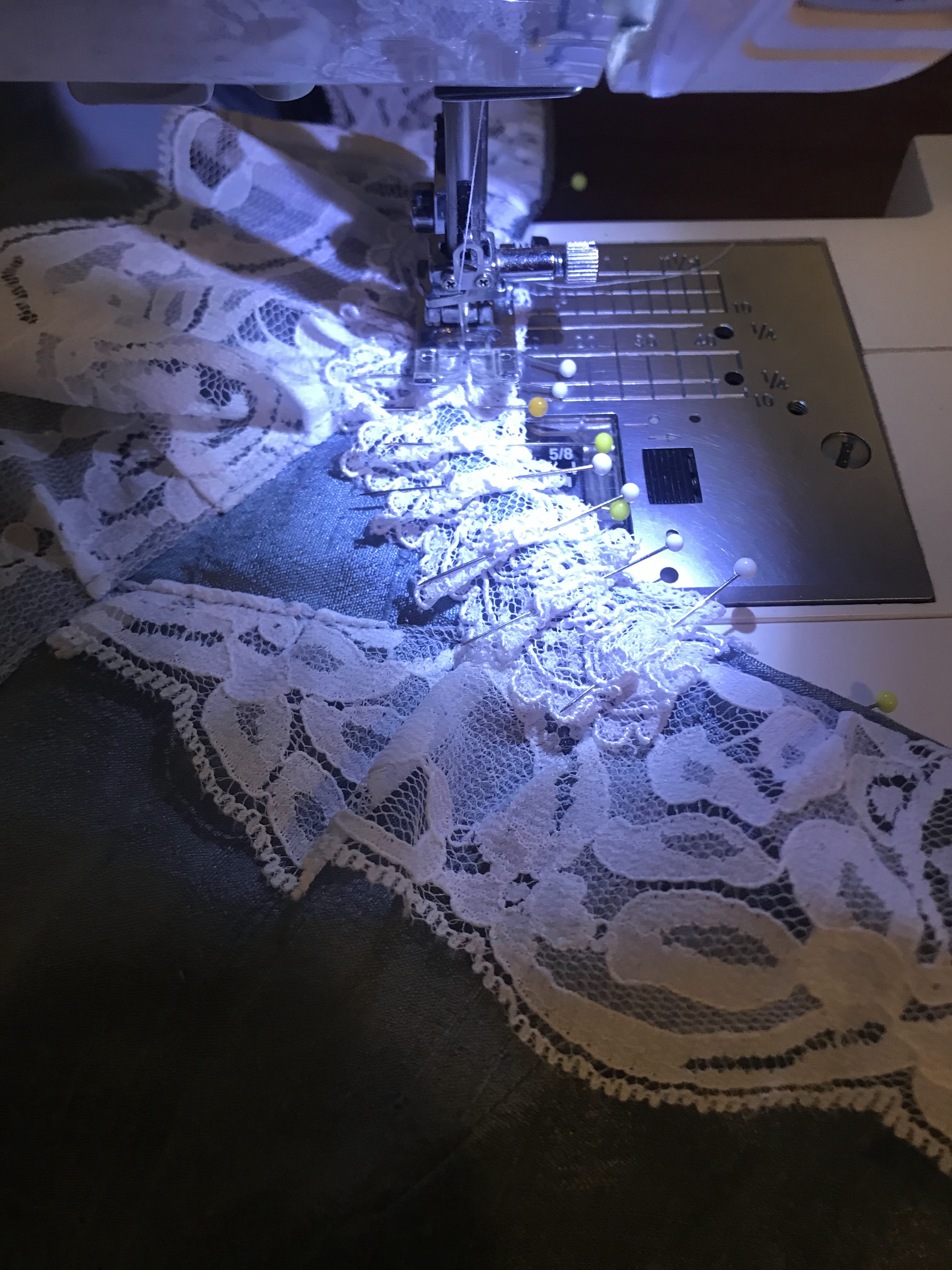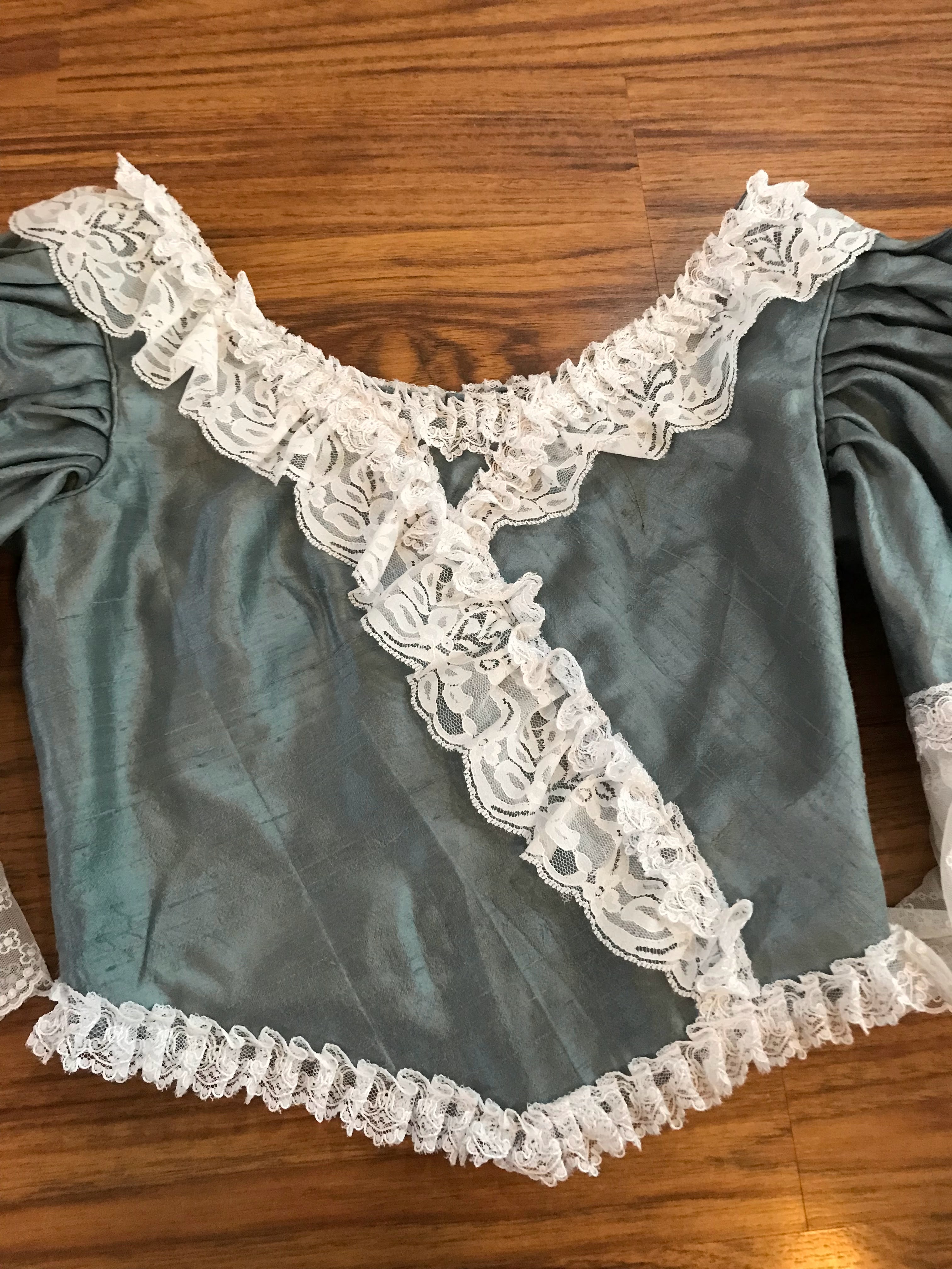 The sleeves are trimmed with wide lace ruffles, made from the same net lace I used for the collar of my wedding dress.