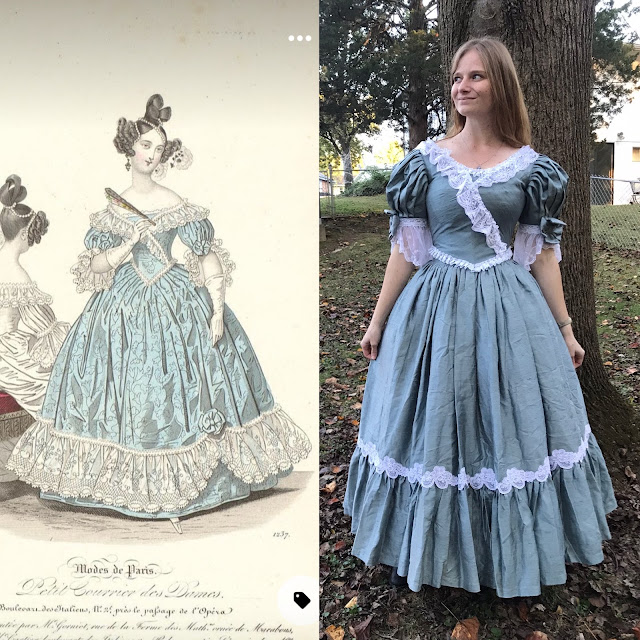 I came across this 1836 fashion plate on Pinterest and fell in love! Short puffed sleeves, basque waist, white trim around the neckline, it would work for Alice! All it was missing was the buttons, but I didn't love those anyway, so I was happy to leave them off. This was the bodice I was going to make for my Halloween costume!