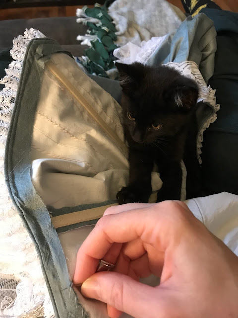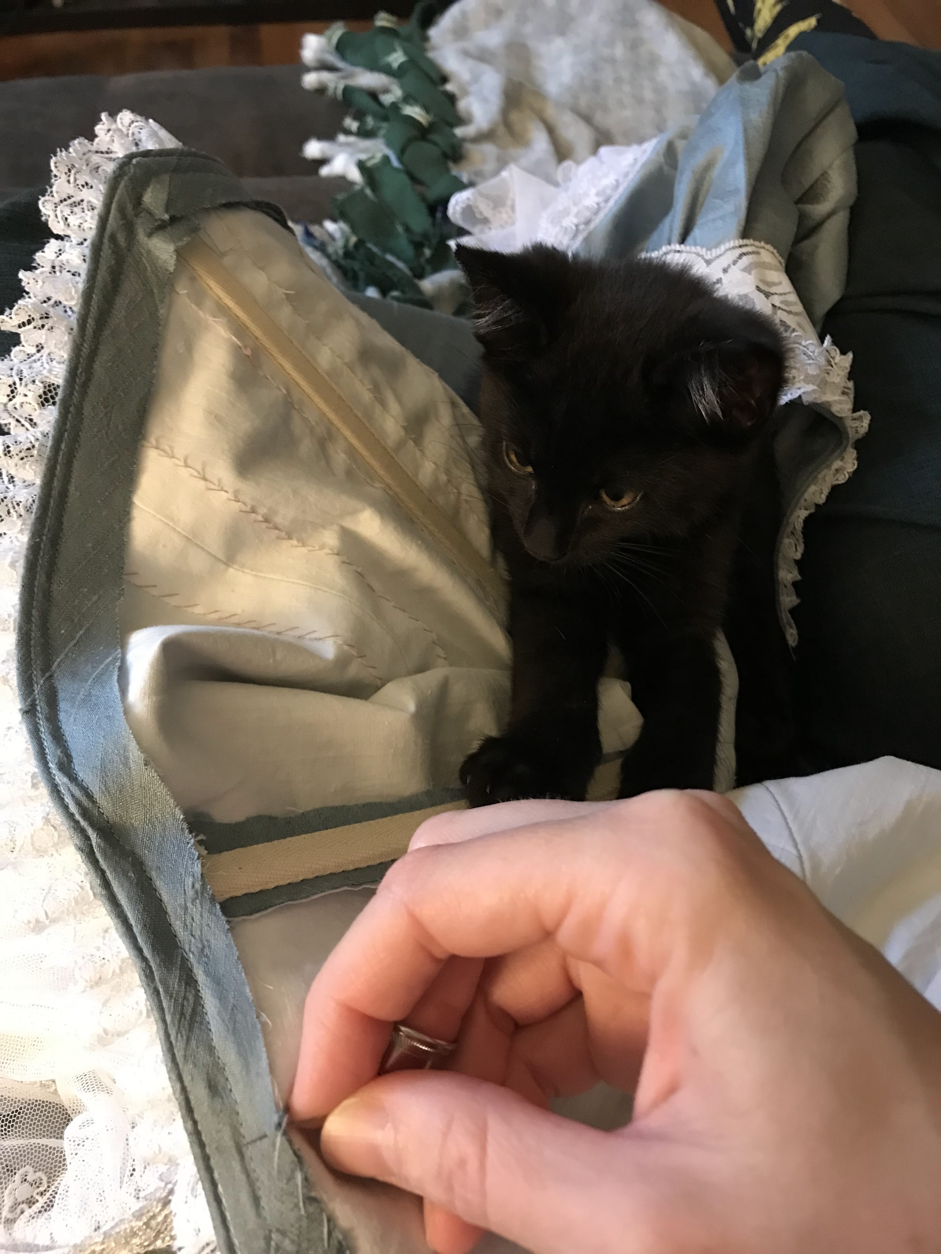 Thus, the bodice is entirely constructed by machine, with some hand finishing work - which the kittens attempted to help with.