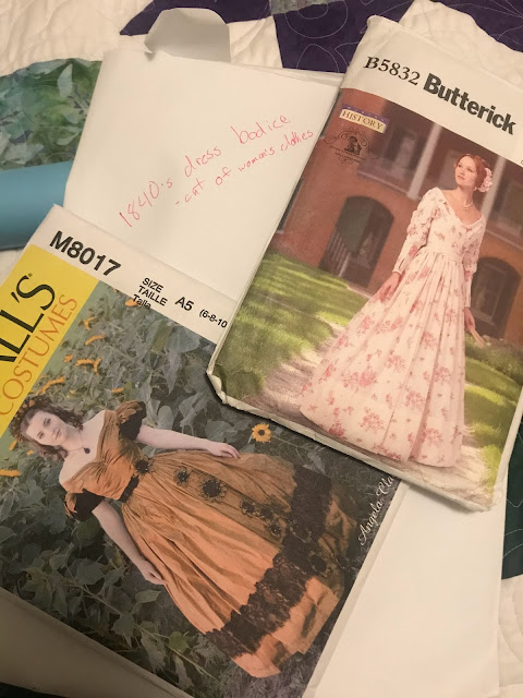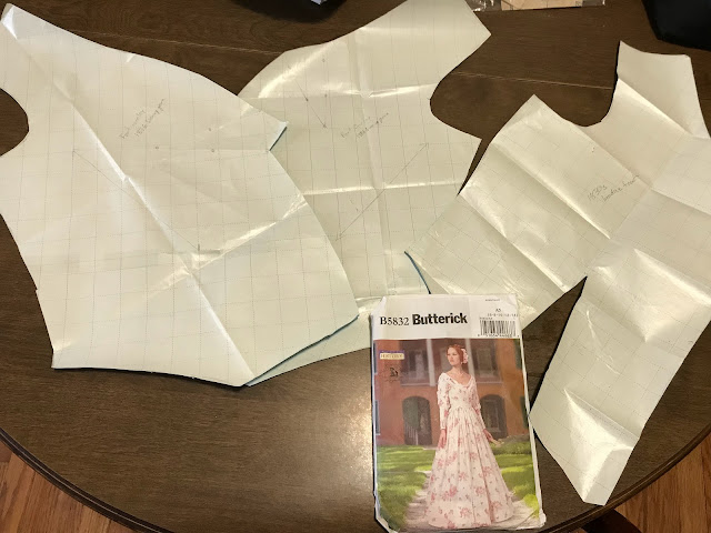 I grabbed the bodice pattern from my 1840's black wool dress, because I thought the 1840's shape and basque waist pattern might be helpful, but I wound up not needing it.