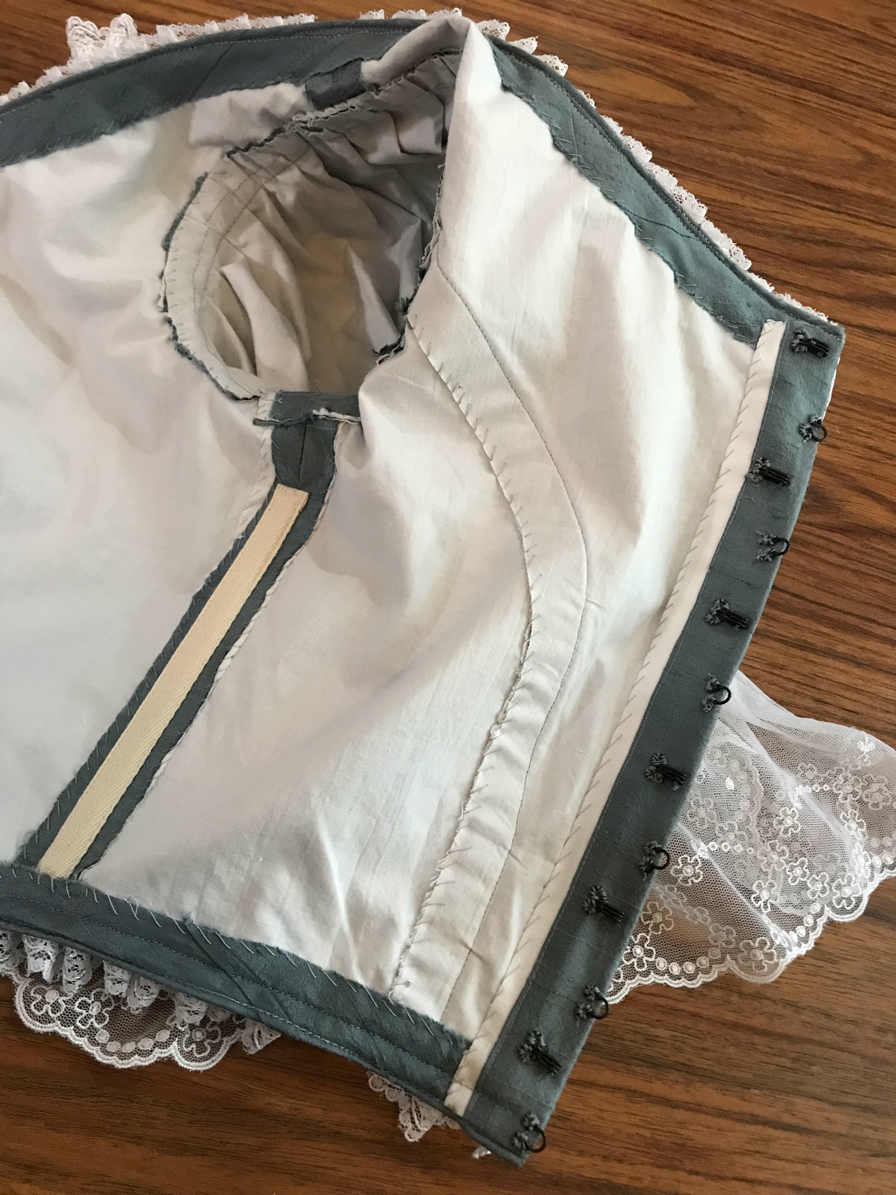 Back in the spring, when I was making all my wedding things, I thought that maybe, one day, possibly, sometime in the future, I might make a historical bodice of some sort to go with my blue silk petticoat. The petticoat was so pretty, I loved the sheen of the silk, so why not use it as the skirt for a gown?