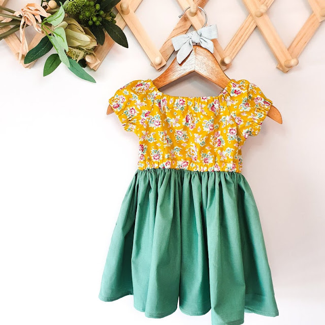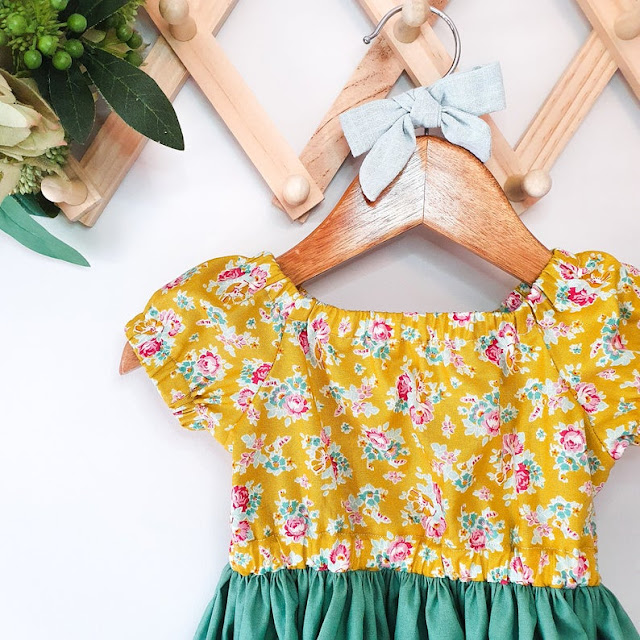 And then there is the Matilda Dress...be still my beating heart. I love how Blossom has used the solid green in the gathered skirt to show off the pretty Tilda Apple Blossom bodice.