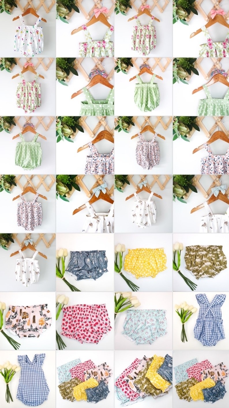 All her items are sized for babies and young toddlers as she simply adores making baby clothes and her own girls are too big now (though they do get some beautiful outfits made especially for them!).
