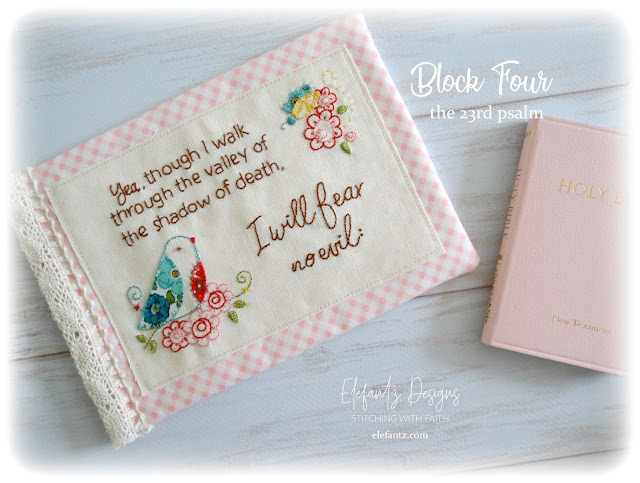 Now one more thing before I go today. Yesterday I shared Block 4 of this year's BOM, The 23rd Psalm. I missed part of the pattern sheet for you to trace and a lovely reader kindly pointed that out for me. There's a small floral/bee spray at the top right which was not on the pattern sheet, but I have updated the download link now so if you downloaded the original version yesterday you can go HERE now and download the amended version.
