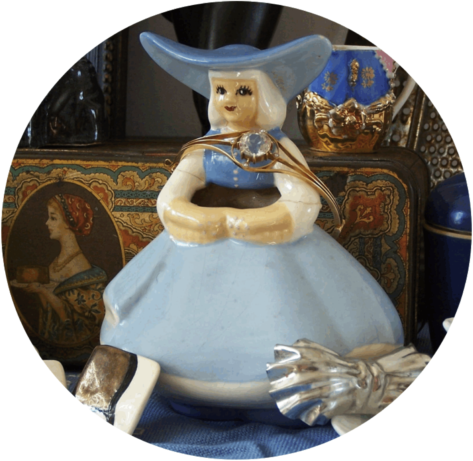 I also use my grandmother's pearls, and a few baubles and bracelets, a bit of lace here and there.