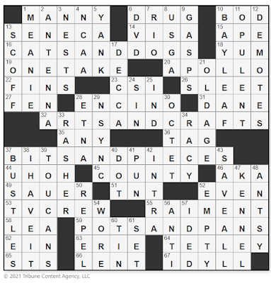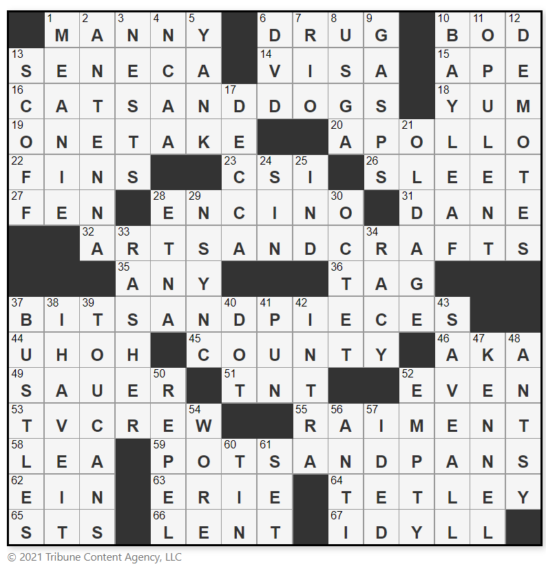 Across:1. Boxing legend Pacquiao: MANNY. He has held 8 world boxing titles and is still fighting at 42.