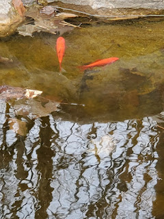I know - it's not even summer and I'm a slug in the backyard. You know what? I'm good with that. I read for a bit, chatted with the girls and watched the fish. Oh yes, all the ice is off the pond and the other day I had only seen the large fish. BUT there's a plethora of goldfish in there. Lots of little ones which were the babies last year. I can't imagine what's going to happen when the new babies come out this year. Anyone want a free goldfish or two or three???