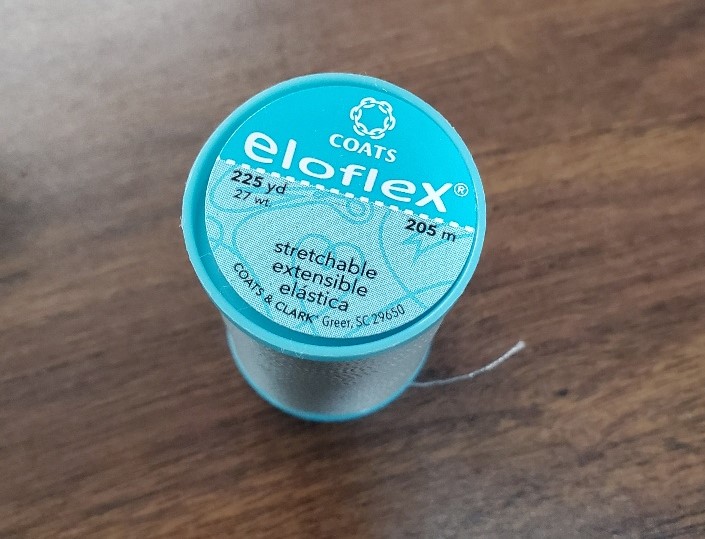 One of my errands on Sunday was to stop at Fabricland. I had found a postcard advertising some new threads by Coats. Hey - I want to try those threads. I managed to find this one called eloflex. It's a stretchy, elastic thread that you can use in the sewing machine.